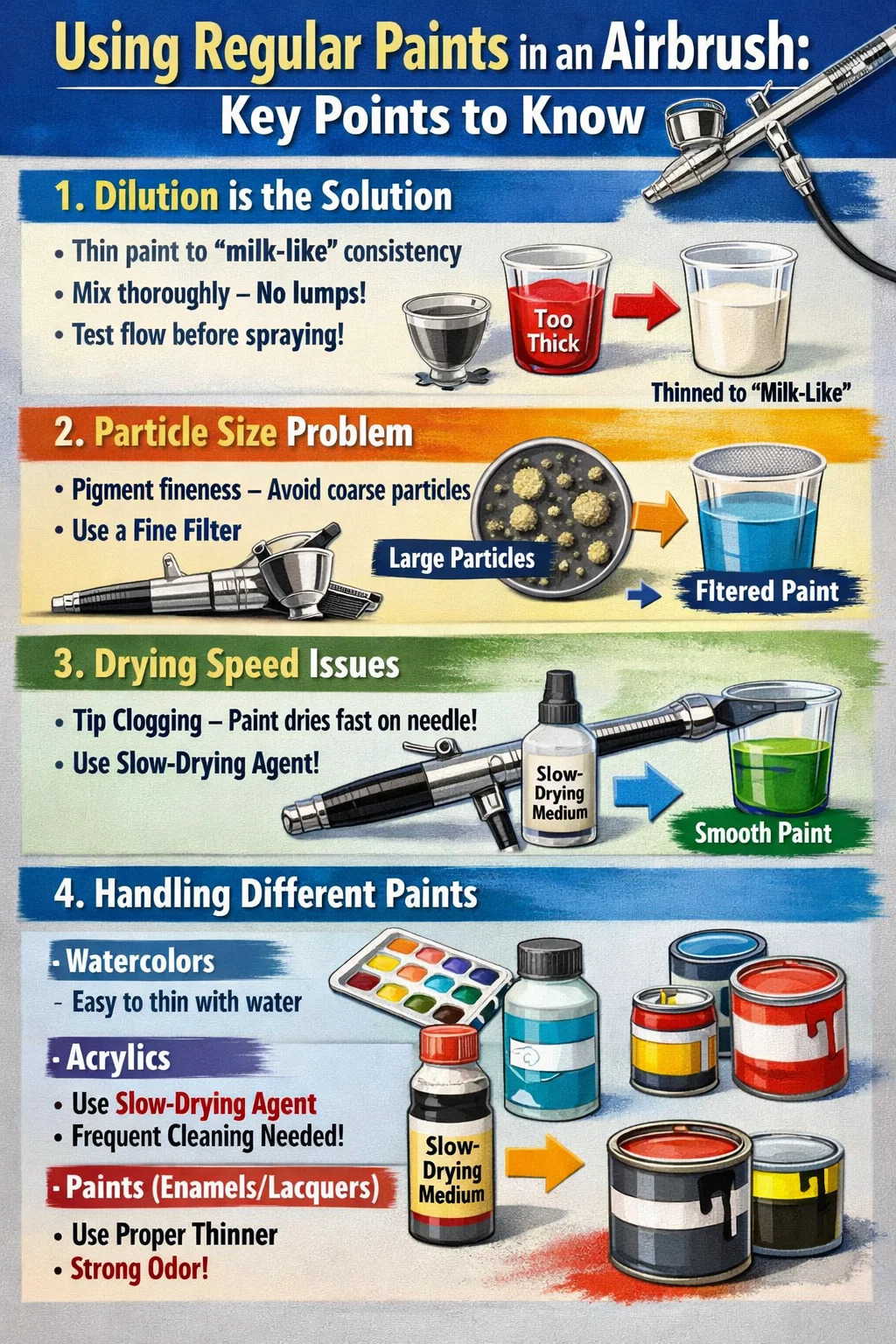 일반 페인트를 사용하고 싶다면 에어 브러싱 , 다음 핵심 사항에 주의해야 합니다.
