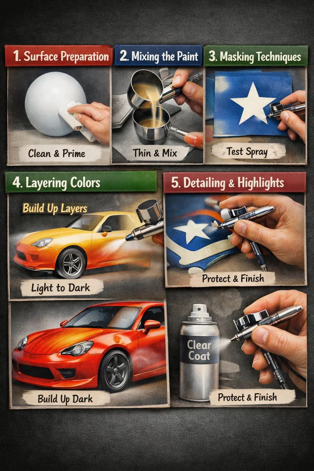 에어브러시를 사용하여 완전한 이미지나 작품을 만드는 것은 본질적으로 "밝은 부분에서 어두운 부분으로 레이어를 쌓아가는" 과정입니다. 물체의 표면에 "빛과 그림자를 뿌리는 것"이라고 생각하시면 됩니다.
