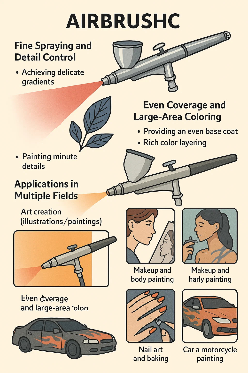 에어브러시는 다음과 같은 주요 영역을 포함하여 광범위한 응용 분야를 가지고 있습니다.